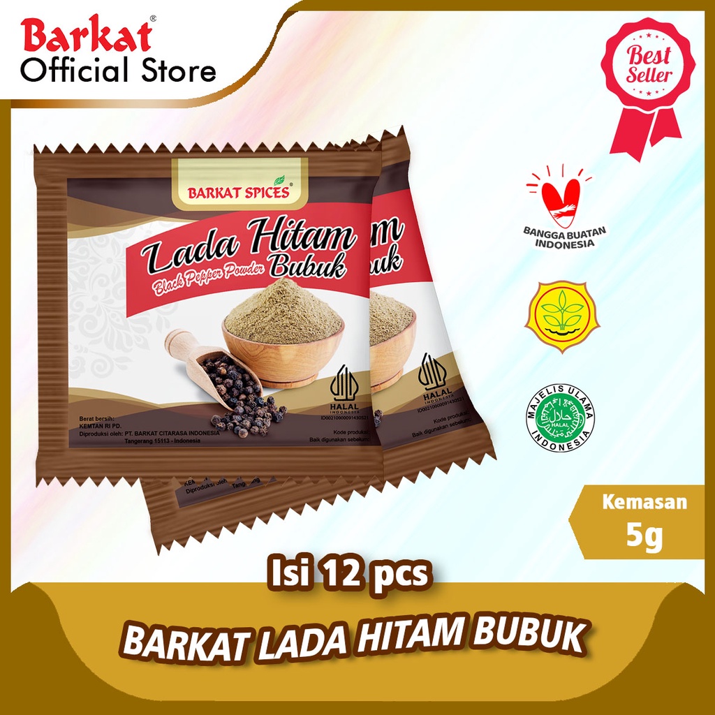 Barkat Lada Hitam Bubuk 5 gram Isi 12 Pcs 100% Rempah Asli Sejak 1939