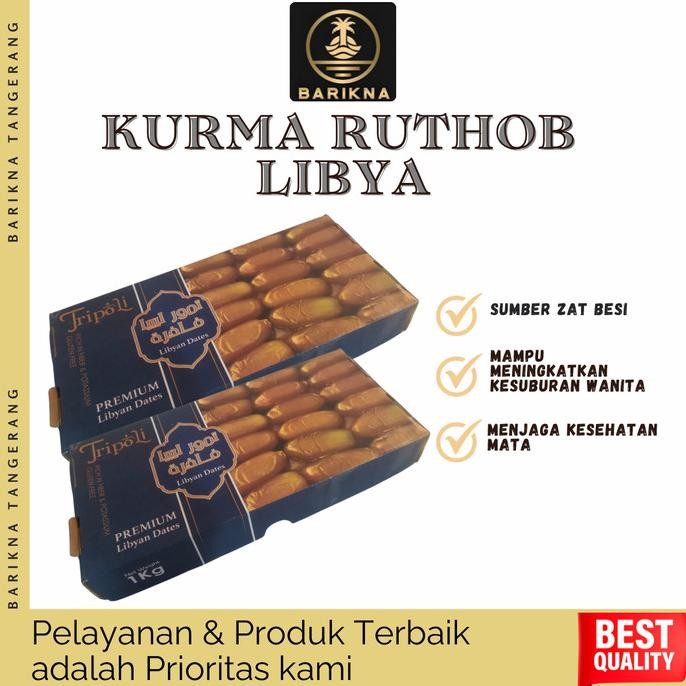 *KURMA RUTHOB LIBYA BARIKNA*(Pusat Oleh Oleh Haji dan Umroh, Berkualitas dan Terjaga untuk Anda)Produk selalu Ready! Jika Stock akan ter- update otomatis.KURMA RUTHOB LIBYARuthob Libya adalah kurma muda yang setengah matang dan segar dengan rasa manis, dan sepet seperti buah sawo, kurma ini salah satu fase ternikmat makan buah kurma. memiliki tekstur basah dan krenyes.Ruthob Libya memiliki manfaat sebagai berikut:1. Meningkatkan kesuburan cocok untuk program hamil2. Aman bagi penderita diabetes3. Sunnah berbuka puasa dengan ruthob4. ASI Booster5. Meningkatkan libido-Pengiriman Cepat-Batas Order Jam 14:00 untuk order akan dikirim dihari yang samaNote: Mohon foto & video saat melakukan unboxing paket ..jika tidak melakukan hal tsb makan kami tidak bertanggung jawab atas kerusakan paket atau kekurangan yang terjadi ..KEMASAN :1.MENGGUNAKAN THINWALL BERBAHAN FOOD GRADE2.MENGGUNAKAN KARDUS PACKING3.MENGGUNAKAN PLASTIK PACKING4.LAKBAN FRAGILE/LAKBAN JANGAN DIBANTING#HAPPYSHOPPING