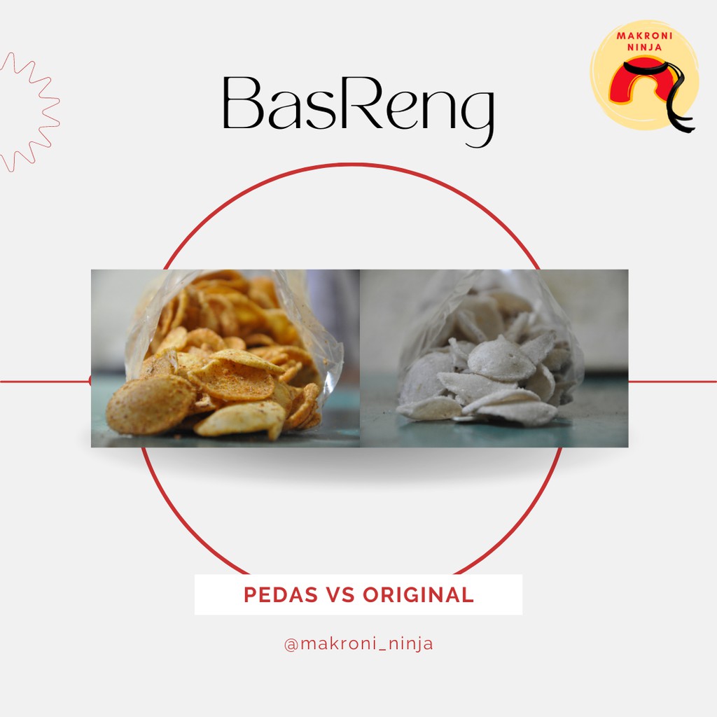 BasReng merupakan salah satu jajanan ringan yang sangat mudah untuk dinikmati. Dengan 2 varian rasa yang dapat dipilih (Original dan Pedas) BasReng sangat cocok untuk menemani setiap aktivitas anda.