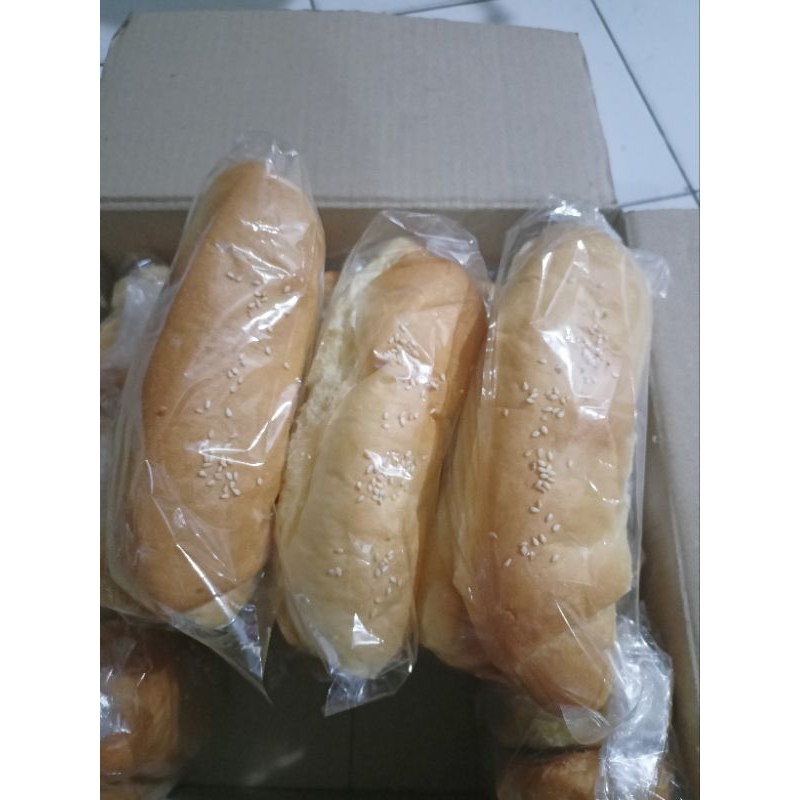 Roti hotdog ukuran pxlxt 16x5x3cm minimal order 30, lalu bisa nambah kelipatan 15
