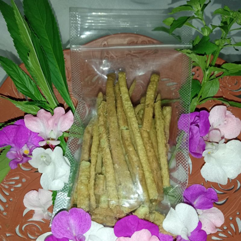 Basil Stick terbuat dari daun kemangi asli, cita rasanya gurih, crispy dan asin