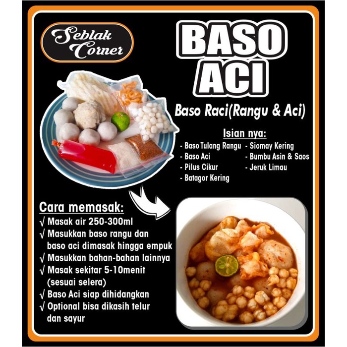 Baso Instan dengan isian 1 Baso rangu jumbo dan 5pcs baso aci, bumbu komplit dan jeruk limau