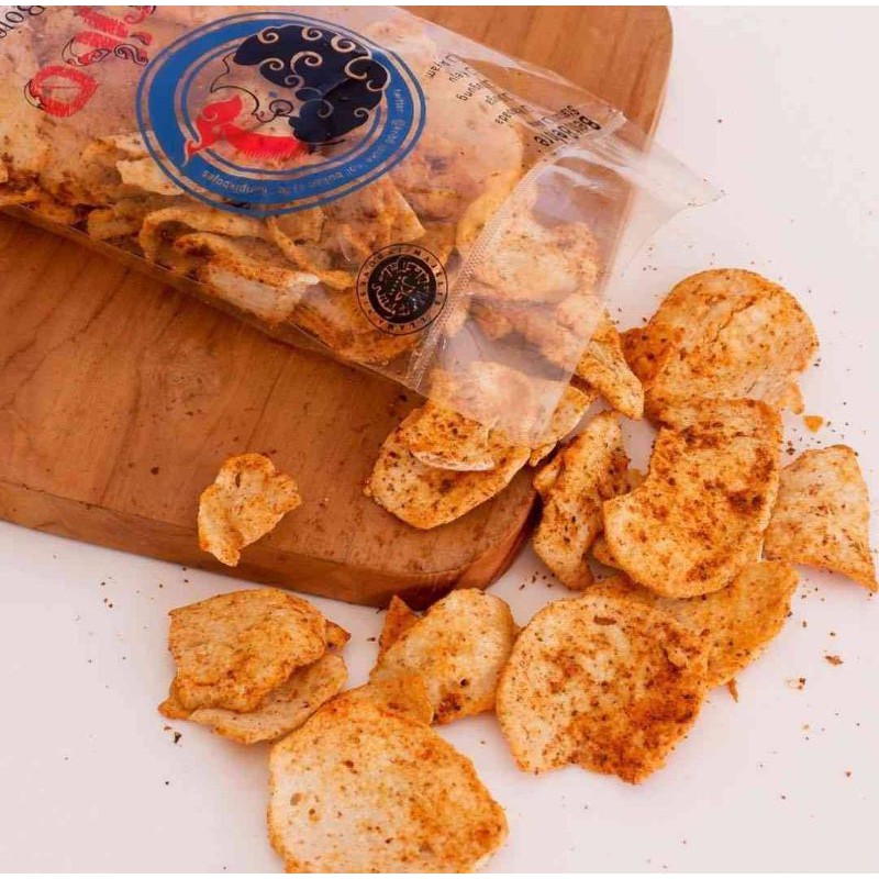 Kerupuk basreng Kribo basreng yang digoreng menjadi kerupuk dengan taburan bumbu ciri khas yang dimiliki Kribo pedas daun jeruk