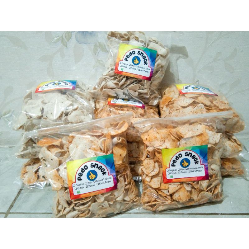 Diiris tipis sehingga menciptakan rasa yg sangat renyah, ditambah taburan bumbu khusus serta daun jeruk untuk menciptakan wangi yg khas.