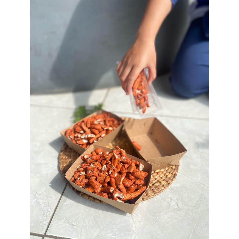 rasa pedas gurih yang bikin ketagihan bisa memanjakan lidah bagi setiap yg memakannya..di pesan.. baru di goreng dadakan...di kemas lalu di kirim...terjamin kesegaran rasanya.. terhindar dari kadaluarsa...silahkan di coba meskipun kami tidak coba2 untuk menyajikan yg terbaik buat anda.