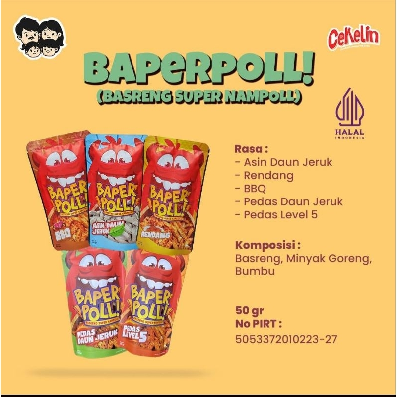 basreng BAPER, cemilan jadul yang dikemas kekinian dengan 4 varian rasa yang enak gurih dan pedas
