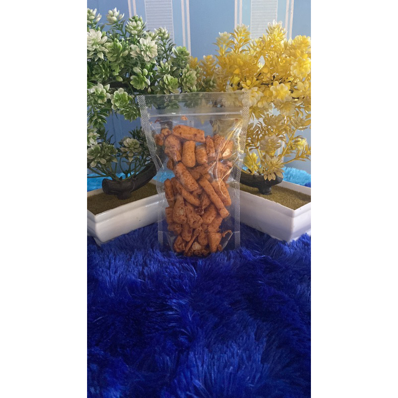 Cemilan dengan rasa gurih, pedas dan tekstur renyah cocok banget ini di jadikan teman ngeteh dan ngopi dirumah dalam kemasan ekonomis