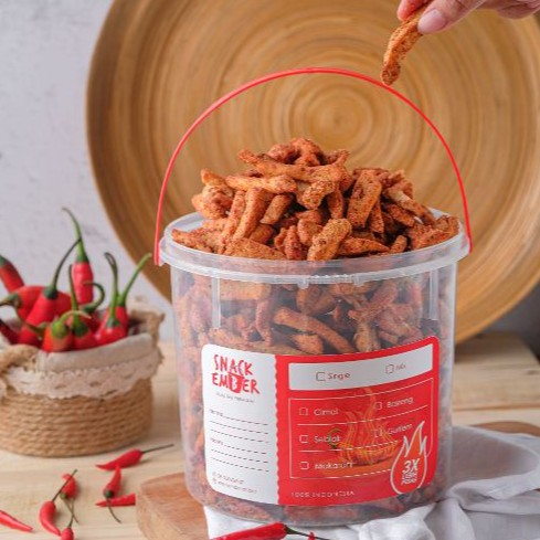 Kerupuk baso ikan goreng renyah dibalut bumbu pedas.