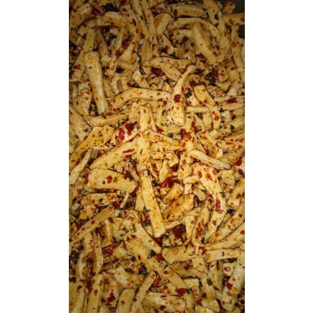 dengan campuran daun jeruk dan chili oil,enak gurih pedas crispy bikin ketagihan,enak banget nih apalagi di tambah nasi uneakkk pollll
