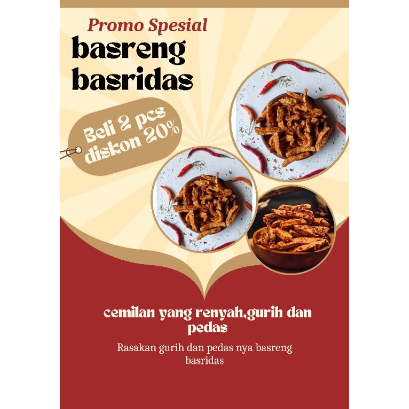Nikmati sensasi pedas dan gurih dalam setiap gigitan basreng kami! Dibuat dari bakso pilihan yang digoreng kering hingga renyah, kemudian dibumbui dengan racikan cabai spesial yang menggugah selera. Cocok untuk teman belajar, nonton , atau nongkrong.