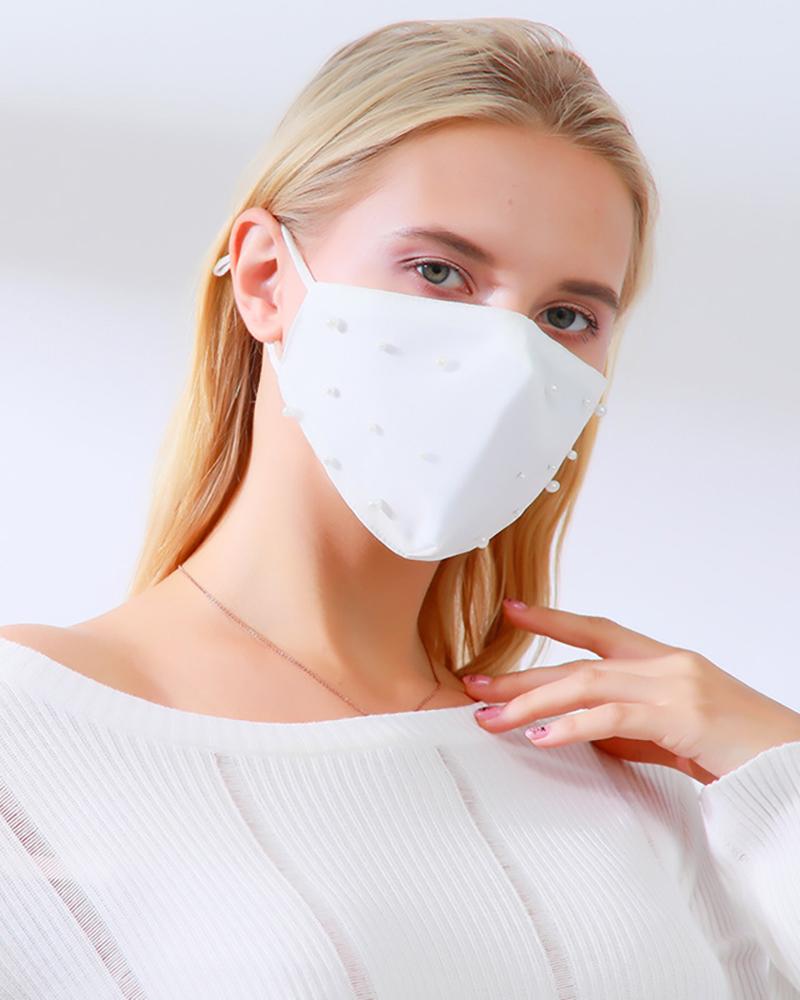 Beaded Breathable Face Mask, White