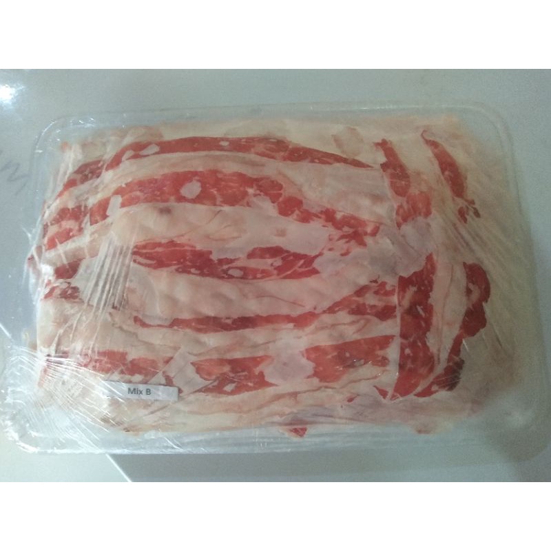 Daging sapi potongan tipis yang kami potong sendiri, menggunakan daging import sapi Australia, USA, dan New zealand. Sudah bersertifikasi halal, cocok untuk olahan shabu shabu dan korean grill, dan masakan indonesia lainnya