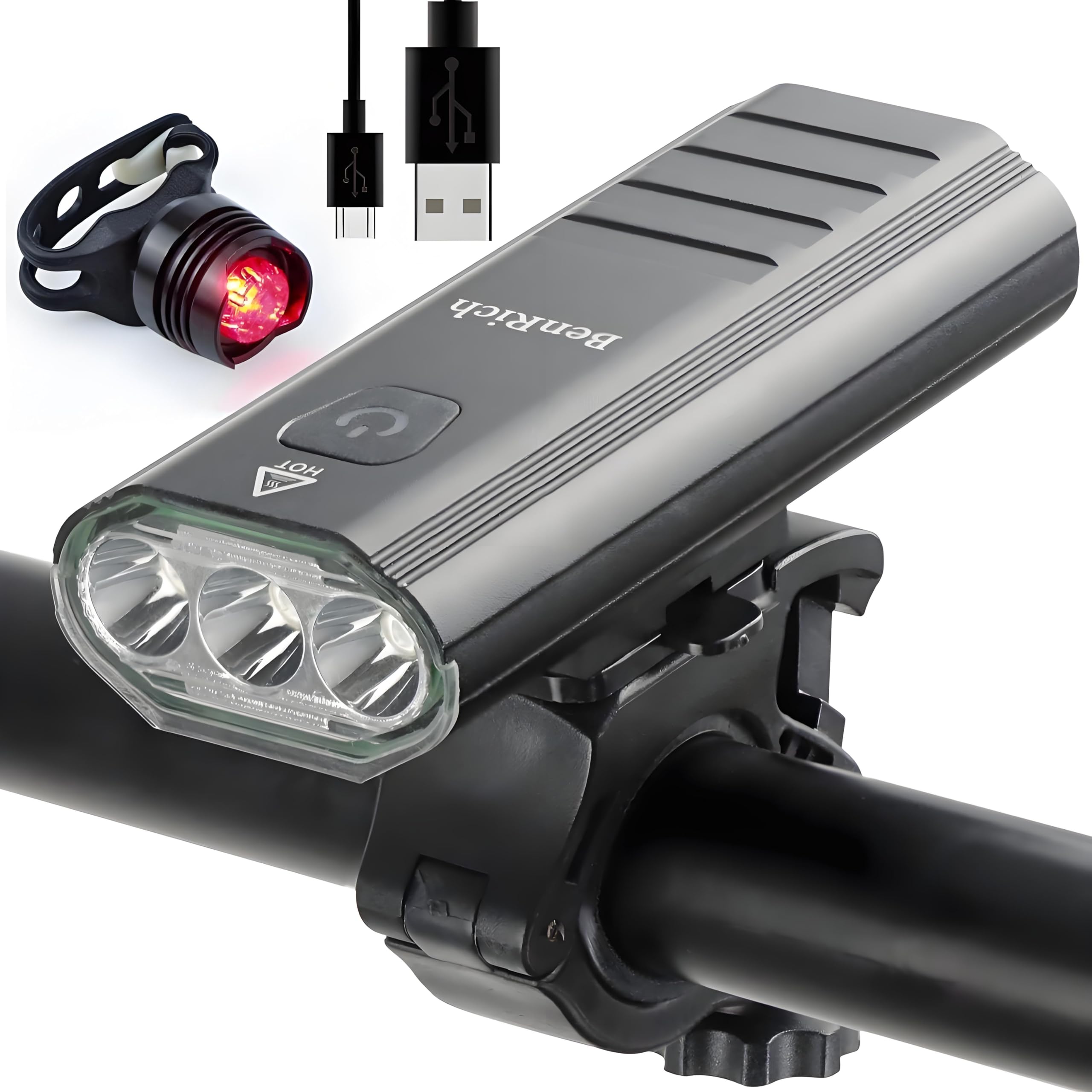 BenRich Велосипедный Водонепроницаемый USB 3000 Высокий Три Фара для Шоссейного Велосипеда Резиновая Накладка Аварийный Катастрофический Японская Инструкция Включена Свет, Светодиод, чёрный