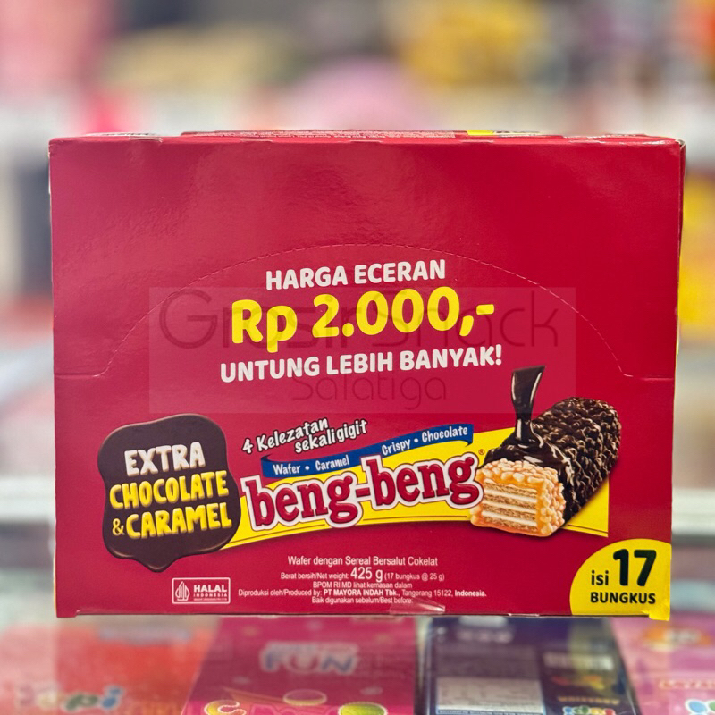 Snek coklat yang dikombinasikan dengan banyak lapisan: wafer, saus caramel, crispy dan coklat.
