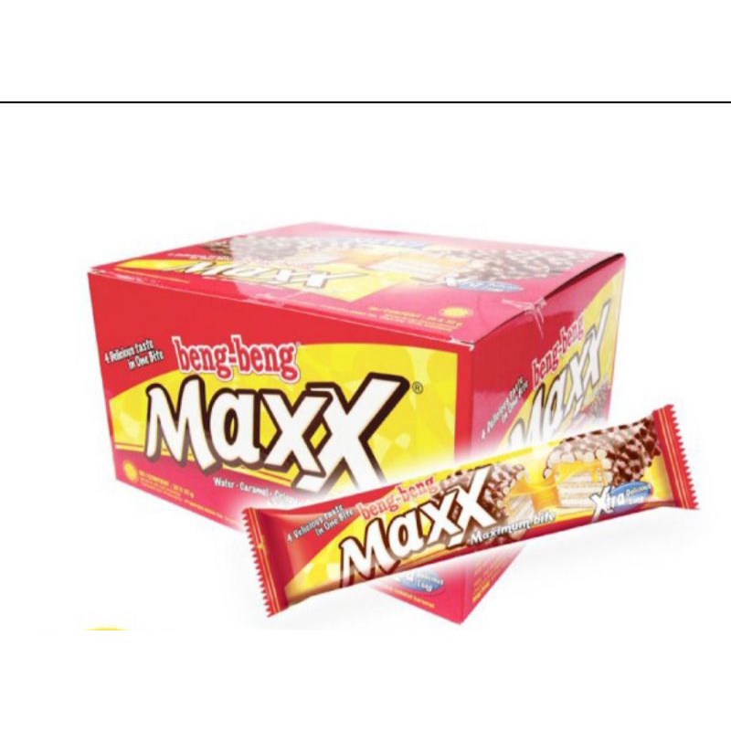 Beng-beng maxx, kelezatan ekstra yang dibuat dengan krim yang ektra lezat, wafer lembut dan renyah yang dilapisi dengan karamel dan coklat susu. Nikmat rasa maksimal dari karamel cokelat favoritmu, Beng-beng Maxx, Feel the maxx. kemasan 32 gr