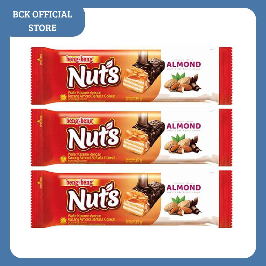 BENG BENG Nuts Almond 35gram merupakan wafer persembahan Beng Beng dengan coklat dan kacang almond pilihan yang nikmat untuk Anda. Real Chocolate, Roasted Almond Give You Extra Yummy Taste!