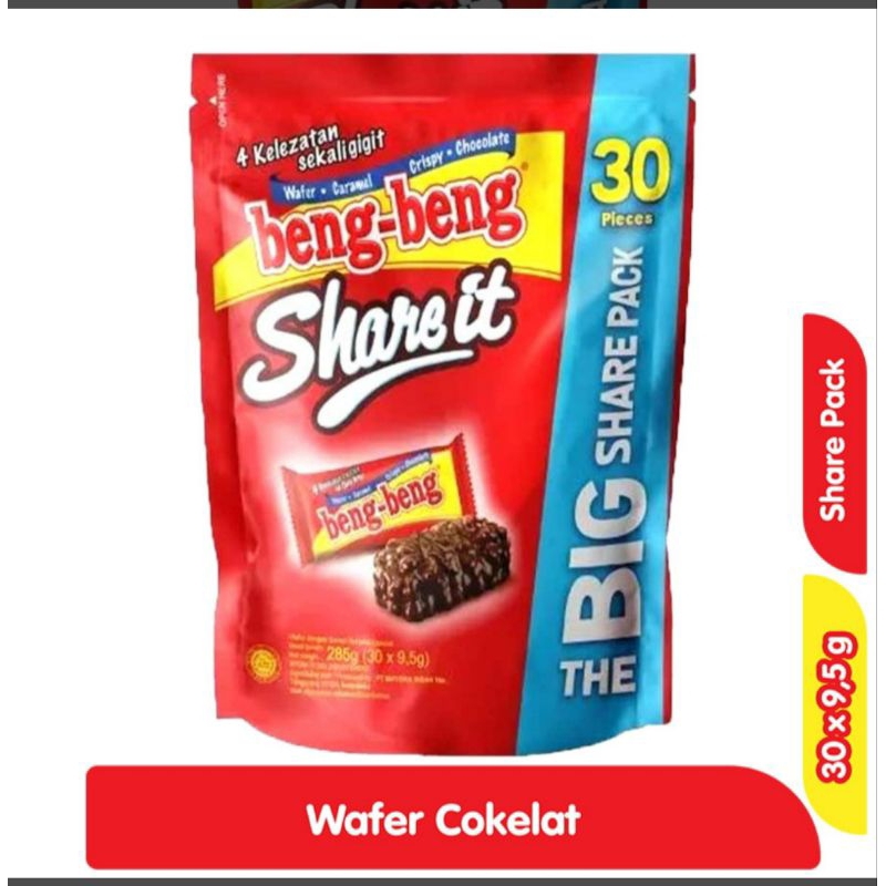 Nikmati paduan cokelat, wafer, karamel, dan rice crispy dalam satu gigitan beng-beng Share It. Menikmati legitnya beng-beng Cokelat ketika digigit membuat saat santai Anda dan keluarga menjadi momen yang mengasikkan. Tersedia dalam kemasan isi 30 pcs yang cocok dinikmati bersama di suasana berkumpul bersama.