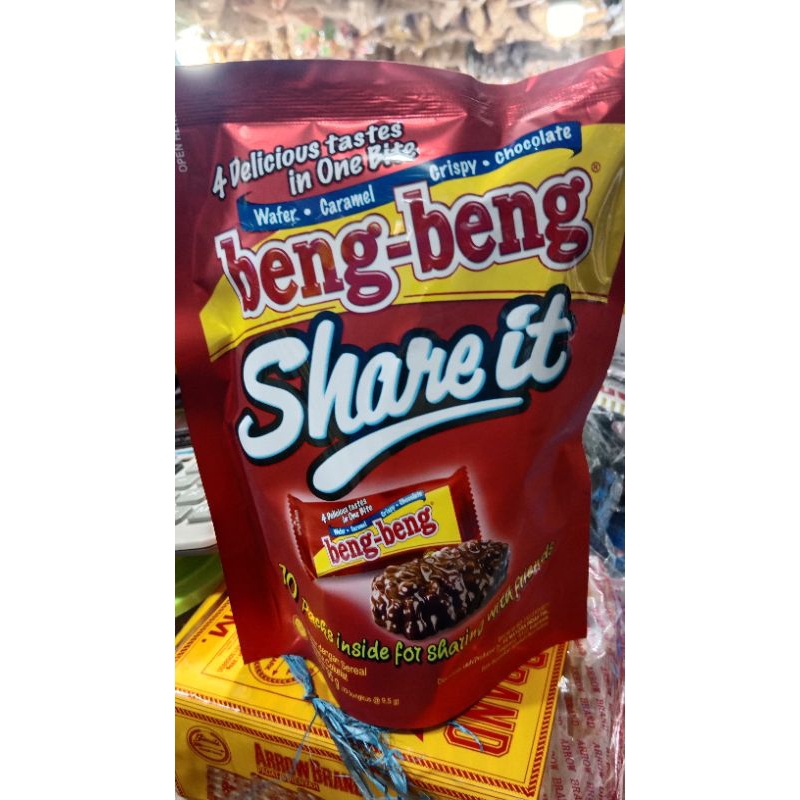 Snack beng-beng kemasan mini share it. kemasan pouch isi 10 pcs. cocok untuk camilan keluarga, untuk santai.