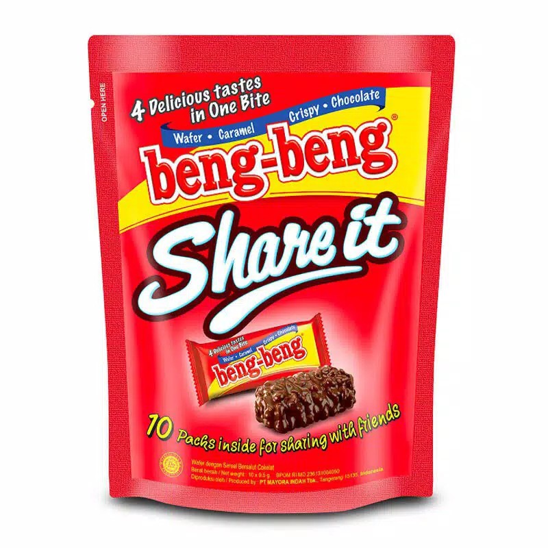 Telah hadir beng beng shareit dpaat dinikmati secara bersama-sama dan tentunya akan hemat. Beng beng ini merupakan wafer xoklat dengan rice crispy berbalut coklat susu yang sangat nikmat. Cwmilan yang dapat dinikmati segala usia ini sangat xoxok dinikmati dengan minum teh dan kopi bersantai bersmakeluarga saat menonton tv atau apaapun. Dengan rasa gurih sangat magis untuk memberikan kesegaran dan keceriaan berkumpul