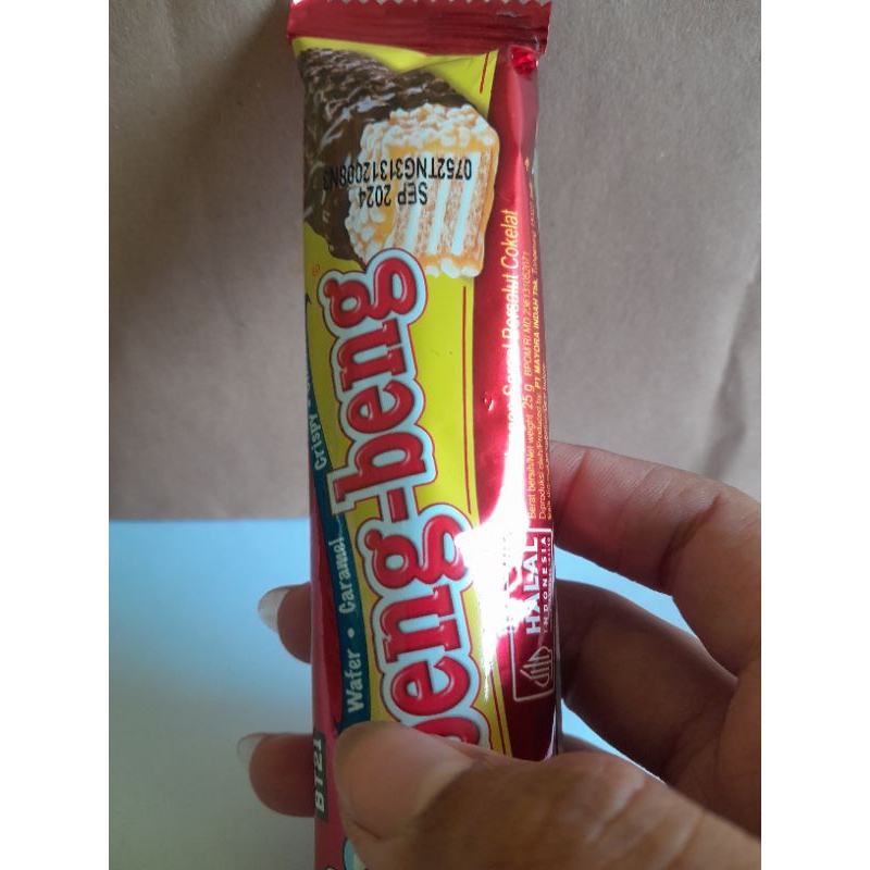 delicious cream soft and crispy wafer coated with caramel and milk Chocolate enjoy your favorite delicious Chocolate Caramel bar BENG-BENG,the real taste