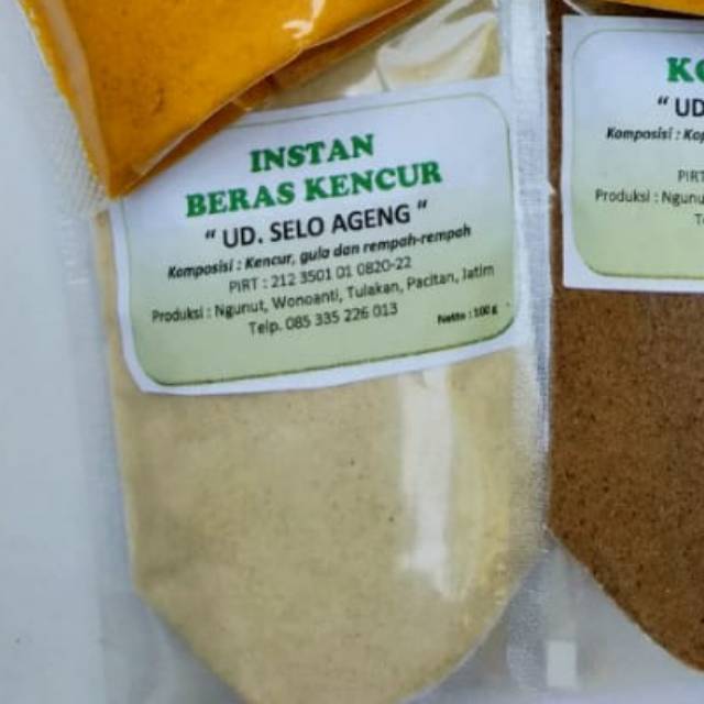 Beras kencur adalah jamu tradisional jawa yang sangat favorit. Mulai anak anak hingga orang dewasa banyak yang suka. Kini hadir dalam bentuk bubuk instan. Sangat praktis penyajiannya yakni tinggal seduh dengan air panas. Selain itu juga lebih awet penyimpanannya. Tanpa pengawet, pewarna buatan dan bahan2 berbahaya lainnya. 100 % alami.