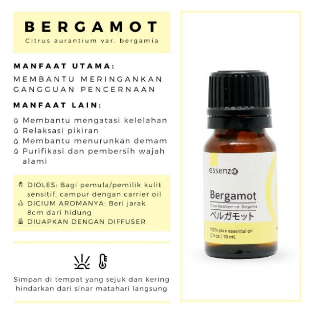 • jika menggunakan diffuser, campurkan 2-3 tetes bergamot oil dengan kurang lebih 100ml air.