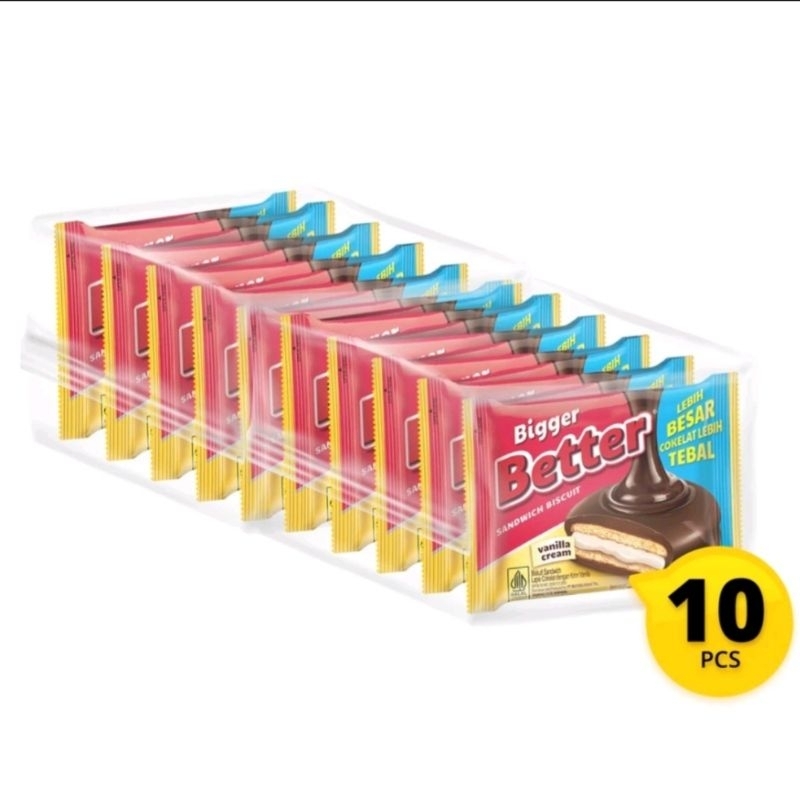 BETTER BISCUIT RENCENG ISI 10 x 27gr CHOCOLATE VANILA CREAM SANDWICH COKELAT BIGGER COKLAT MAYORA ECER BISKUIT KUE WAFER MAKANAN RINGAN CEMILAN ANAK GROSIR MURAH RENCENGAN