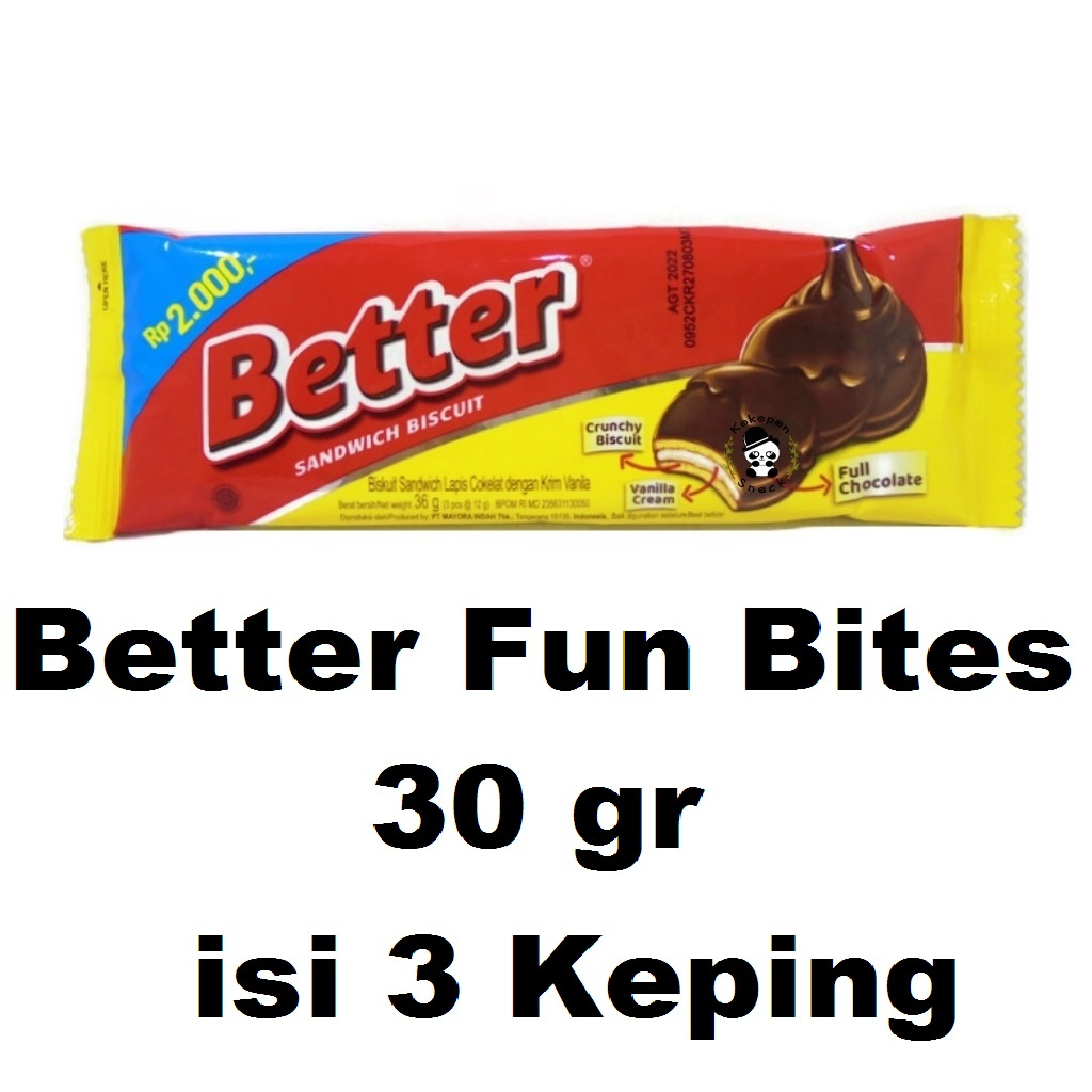 Roma Better Sandwich Biskuit dibalut dengan coklat yang tebal dipadu krim vanila yang lezat mampu menjadikan harimu better Kini hadir dengan packaging baru isi ekstra tiap sachetnya untuk menambah kenikmatan sekaligus bisa berbagi satu sachet isi 3 keping biskuit.