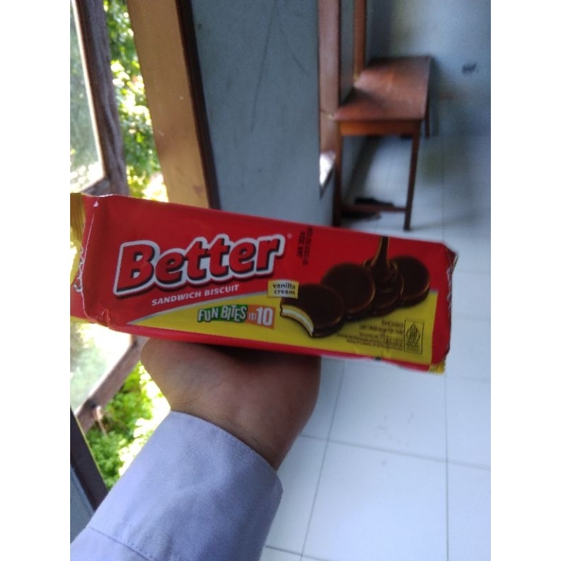 Better Sandwich coklat merupakan biskuit coklat yang enak dan harga terjangkau...sangat cocok untuk camilan ketika santai...terbuat dari bahan yang menyehatkan