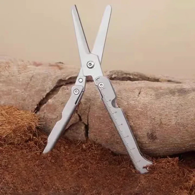 Big Scissors with Back Clip Graduated Scale Multi Functional Mini Portable Folding Scissors Combination Tool Outdoor Tools