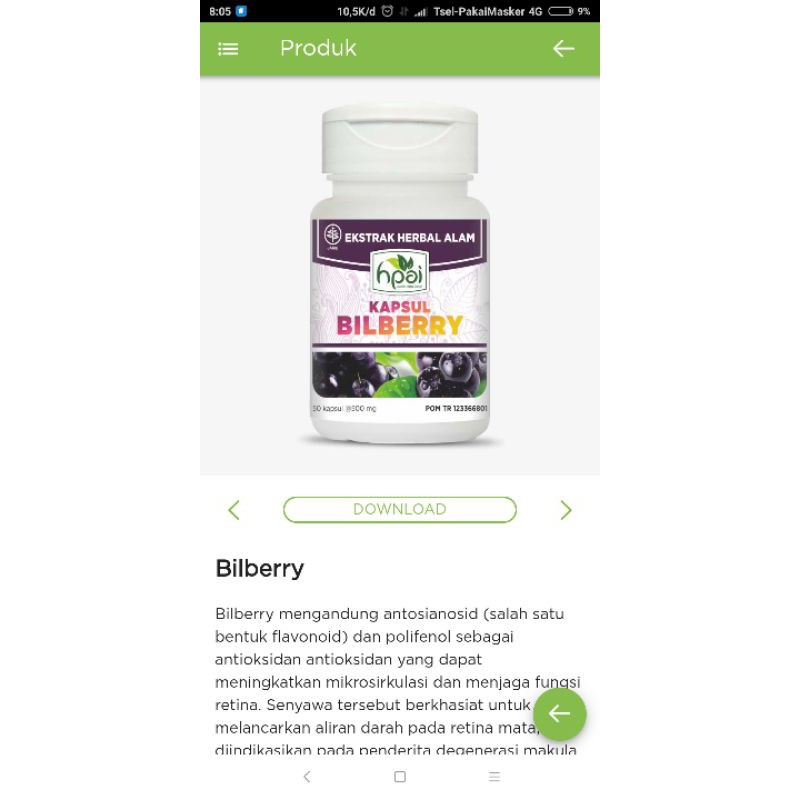 Bilberry mengandung antosianosid (salah satu bentuk flavonoid) dan polifenol sebagai antioksidan antioksidan yang dapat meningkatkan mikrosirkulasi dan menjaga fungsi retina. Senyawa tersebut berkhasiat untuk melancarkan aliran darah pada retina mata; juga diindikasikan pada penderita degenerasi makula, katarak, retinopati diabetik dan meningkatkan daya penglihatan di malam hari.