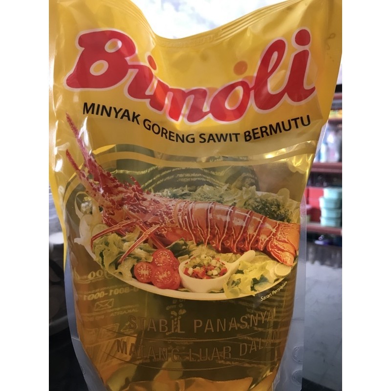 Minyak Kemas merek Bimoli ukuran 2 liter yg membuat hasil masakan renyah dan kualitas minyak terbaik.