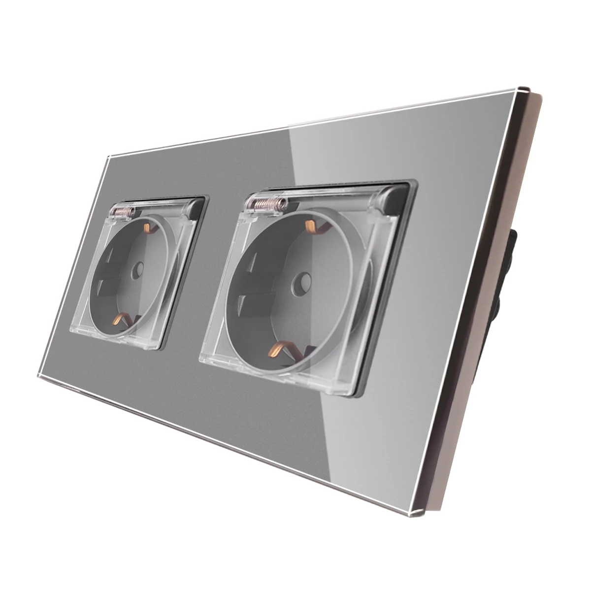 Bingoelec настенная розетка, Серый сенсорный выключатель и водонепроницаемая розетка с прозрачной стеклянной панелью, товары для дома