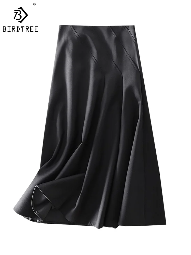 Birdtree, 95% шерсть, Элегантная модная юбка в стиле ретро, с высокой талией, трапециевидная, простая, офисная, Женская юбка, теплая, Осень-зима, новинка, B3D243QM