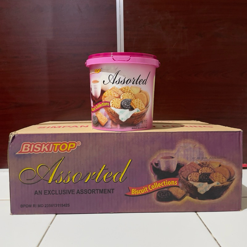Satu karton Biskitop Assorted timba 400 gr berisikian 6 timba.