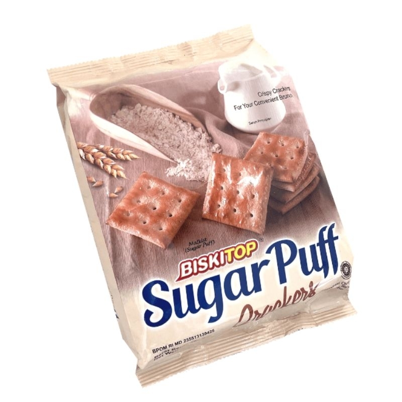 biscuit puff cracker ini bertabur gula diatasnya.