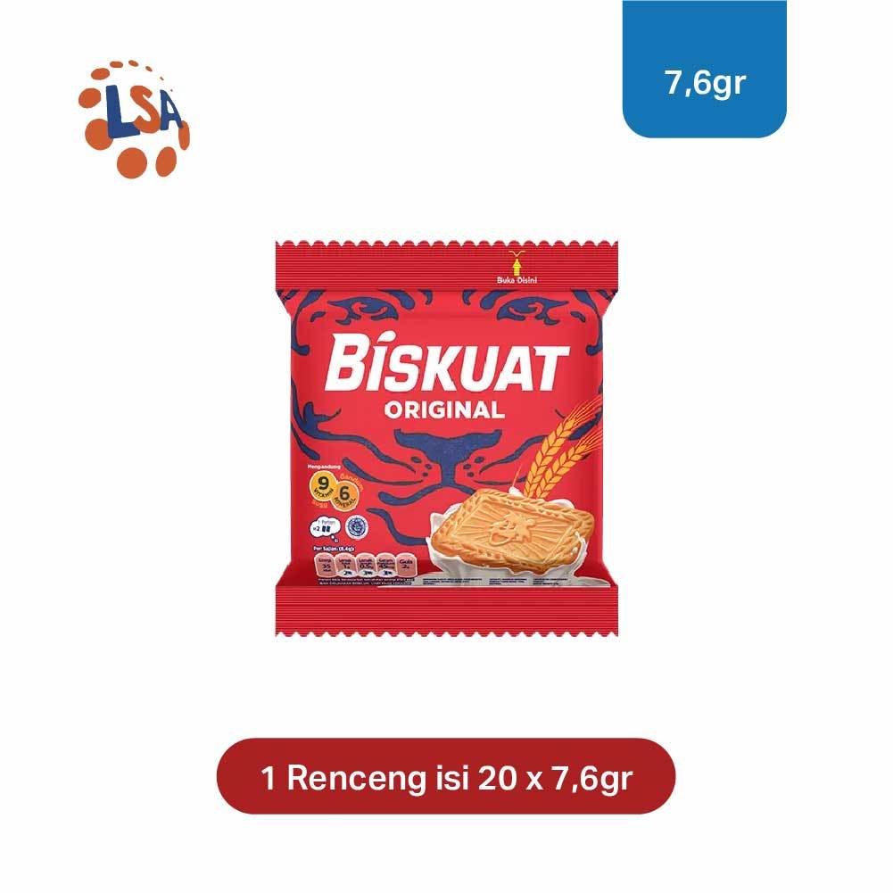 Biskuat Original adalah biskuit energi rasa susu yang lezat dan bergizi dengan kandungan 9 vitamin dan 6 mineral yang sangat cocok dikonsumsi anak-anak. Biskuat Original berbentuk seperti kue kering yang terbuat dari perpaduan gandum dan susu, cocok disajikan bersama teh dan aman dikonsumsi anak-anak hingga orang dewasa.
