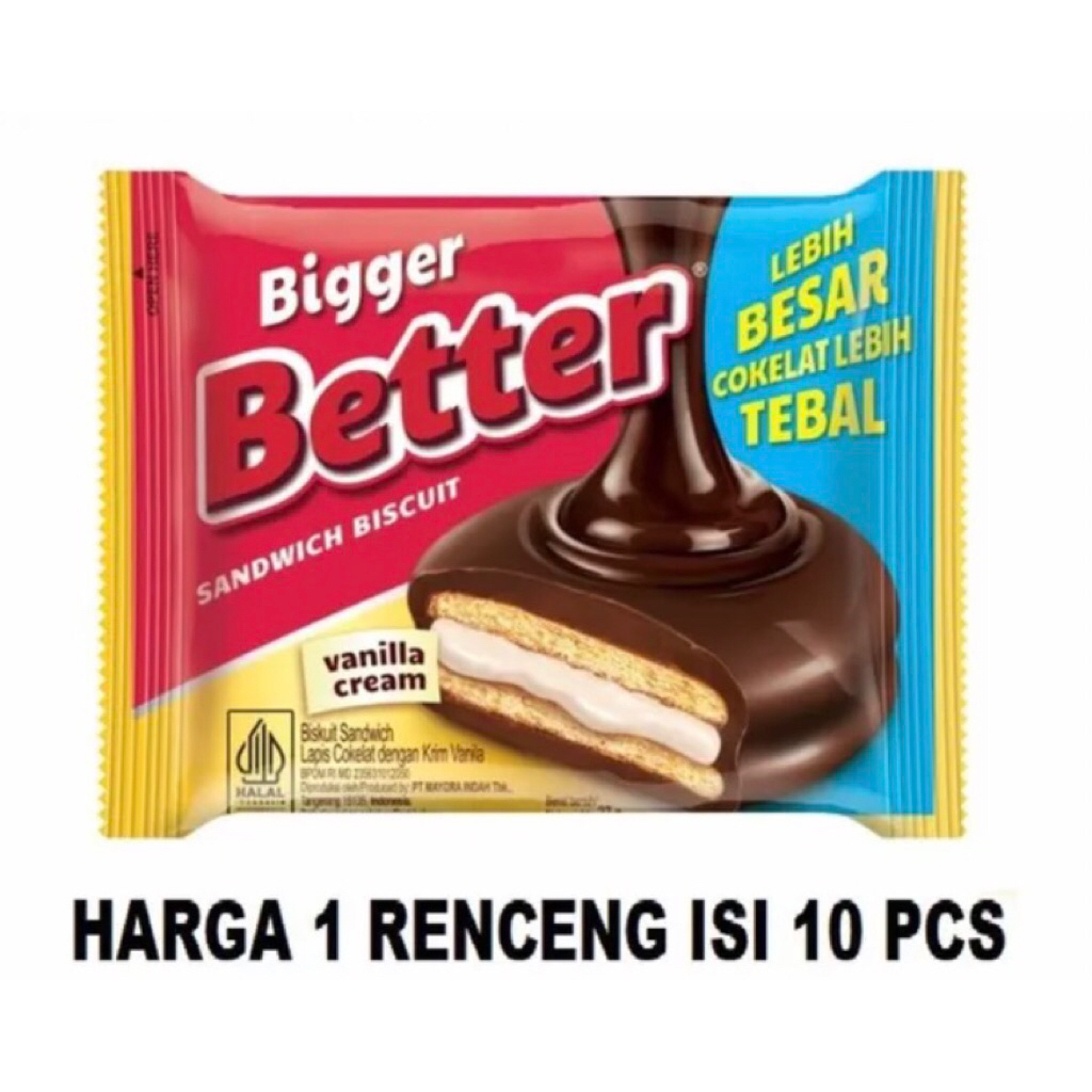 BETTER Bigger Vanilla merupakan sandwich biskuit dengan krim vanila lembut berlapis cokelat yang hadir dengan rasa lezat dan nikmat. Sandwich biskuit ini juga dibuat dari coklat dan biskuit pilihan yang diproses secara modern dan higienis. Sandwich biskuit ini dapat disantap secara langsung dan dinikmati saat santai bersama keluarga.