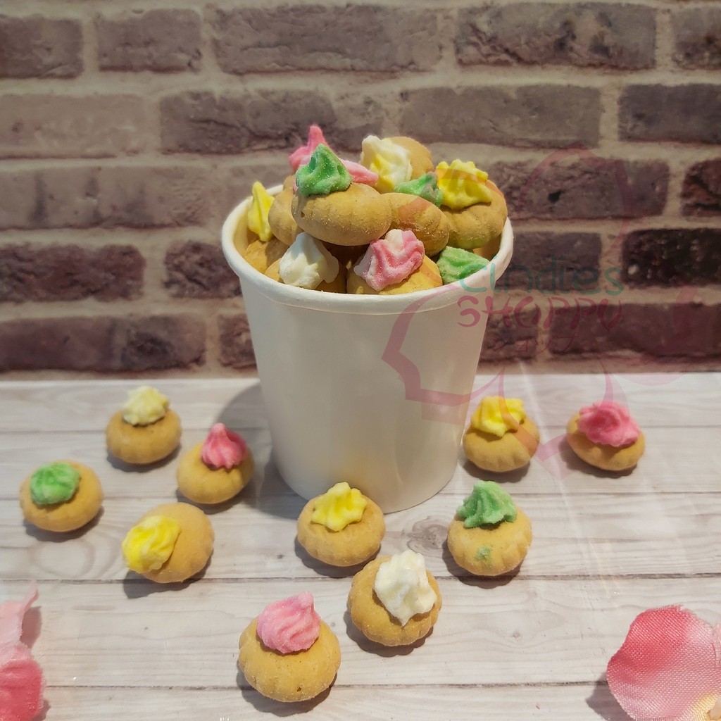 Biskuit jadul dengan TOPPING gula kembang menghiasi berbentuk kerucut WARNA WARNI..