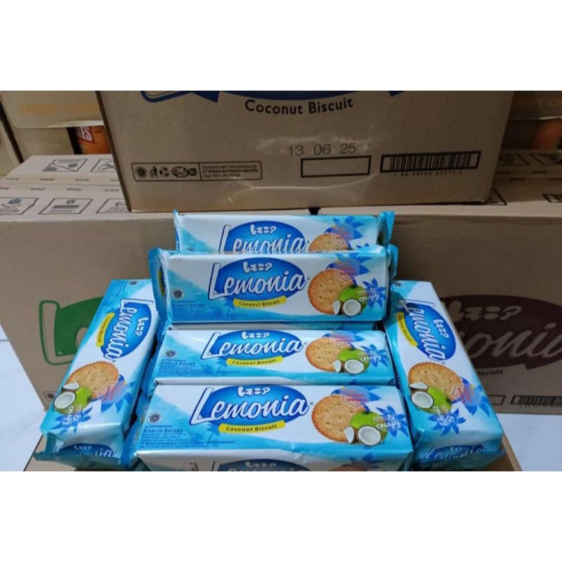 Biskuit Lemonia adalah biskuit tipis dan renyah dengan rasa lemon yang lezat dan manis. Biskuit ini memiliki taburan gula di atasnya, yang menambah kenikmatan saat digigit. Lemonia tersedia dalam berbagai varian seperti Lemon, Cokelat, dan Kelapa.