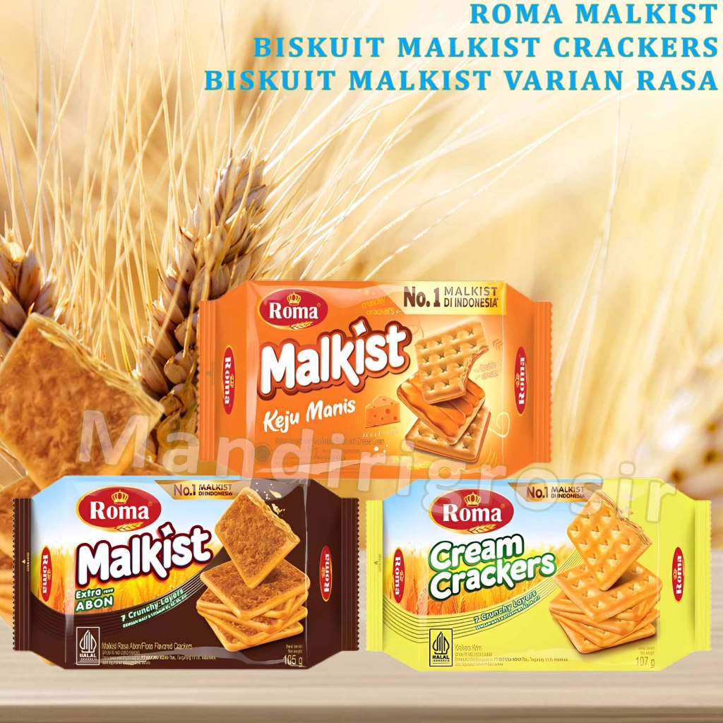 Roma Malkist adalah jenis biskuit yang terkenal dengan teksturnya yang renyah dan lapisan gula di permukaannya. Produk ini hadir dalam beberapa varian rasa yang menarik.Produk ini adalah biskuit malkist populer dari merek Roma yang diproduksi oleh Mayora. Nama "Malkist" berasal dari jenis biskuit berbasis tepung dengan tekstur renyah dan biasanya dilengkapi topping atau rasa tambahan.