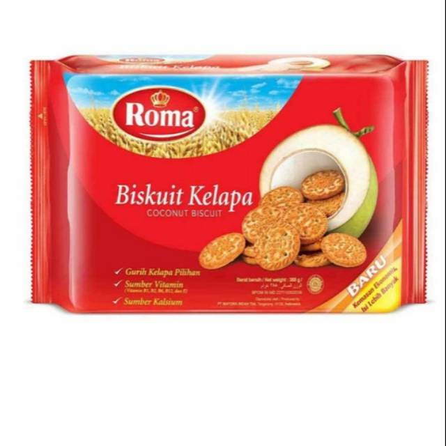 Roma Kelapa merupakan biskuit yang dibuat dari kelapa segar pilihan. Biskuit ini dilengkapi dengan sumber vitamin dan kalsium yang dapat menutrisi tubuh Anda. Nikmati biskuit bersama teh di sore hari dapat mencerahkan hari Anda.