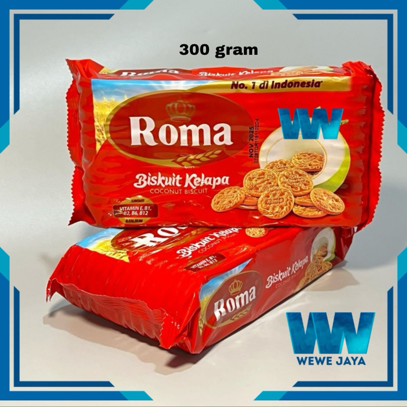 Roma Biskuit Kelapa adalah biskuit kelapa dengan rasa renyah dan gurih yang dihasilkan dari kelapa pilihan. Rasa kelapa asli dari Roma biskuit ini telah menjadi kesukaan banyak orang, baik di Indonesia atau pun di berbagai negara lain. Diperkaya dengan vitamin B1, B2, B6, B12, dan E, serta kalsium, biskuit Roma Kelapa ini akan menjadi teman biskuit kelapa yang sehat untuk Anda. Jalani hari-hari bersama kerenyahan biskuit Roma Kelapa, teman yang baik untuk Anda.