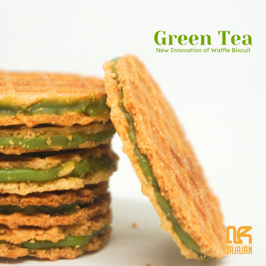 Biskuit Wafel JAJAJAN varian Rasa Green Tea yang lezat dan nikmat dengan kualitas terbaik.