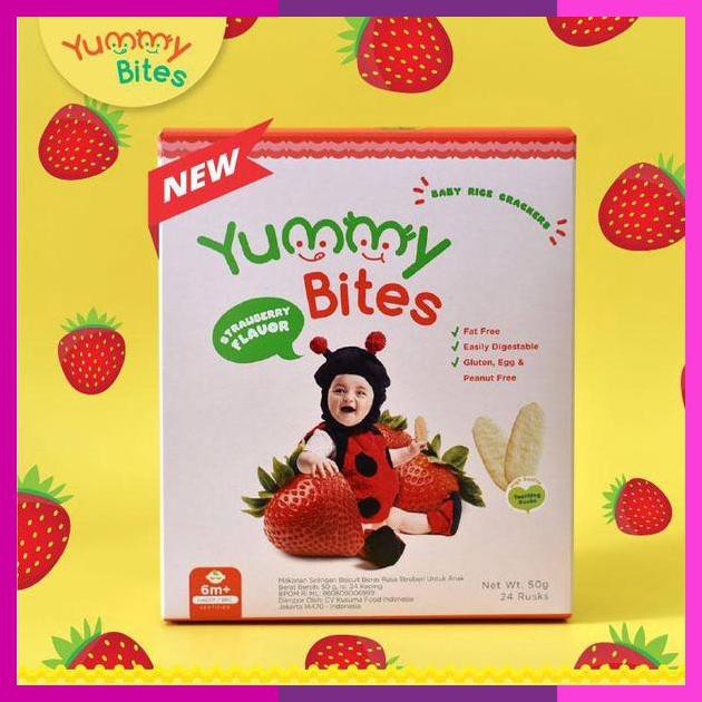 Biskuit Yummy Bites Rice Cracker Rasa Strawberry Pisang 50 Gr