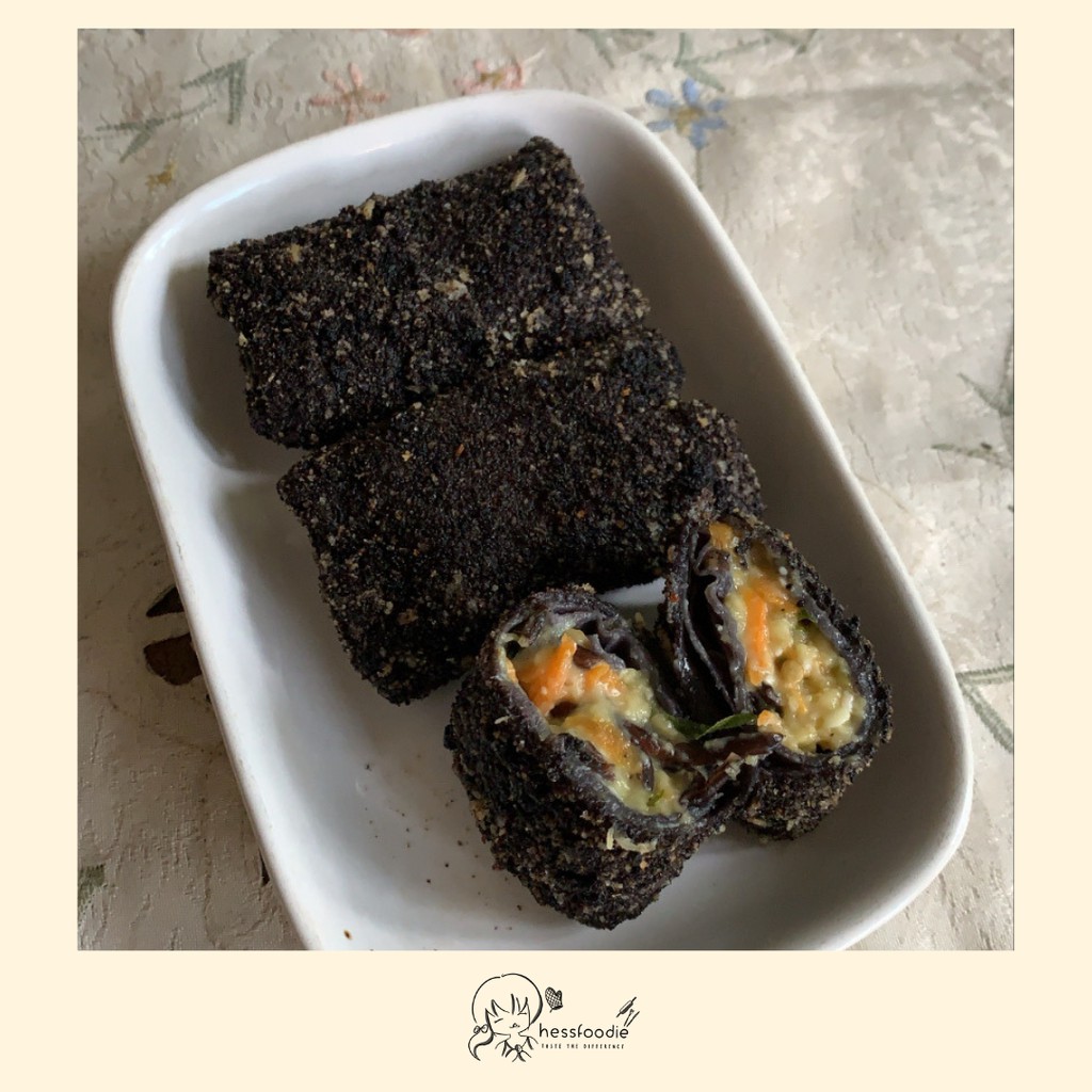 Risol sayur dengan keju yang punya rasa gurih dan pedas. Dilapisi dengan kulit berwarna hitam yang sangat unik.