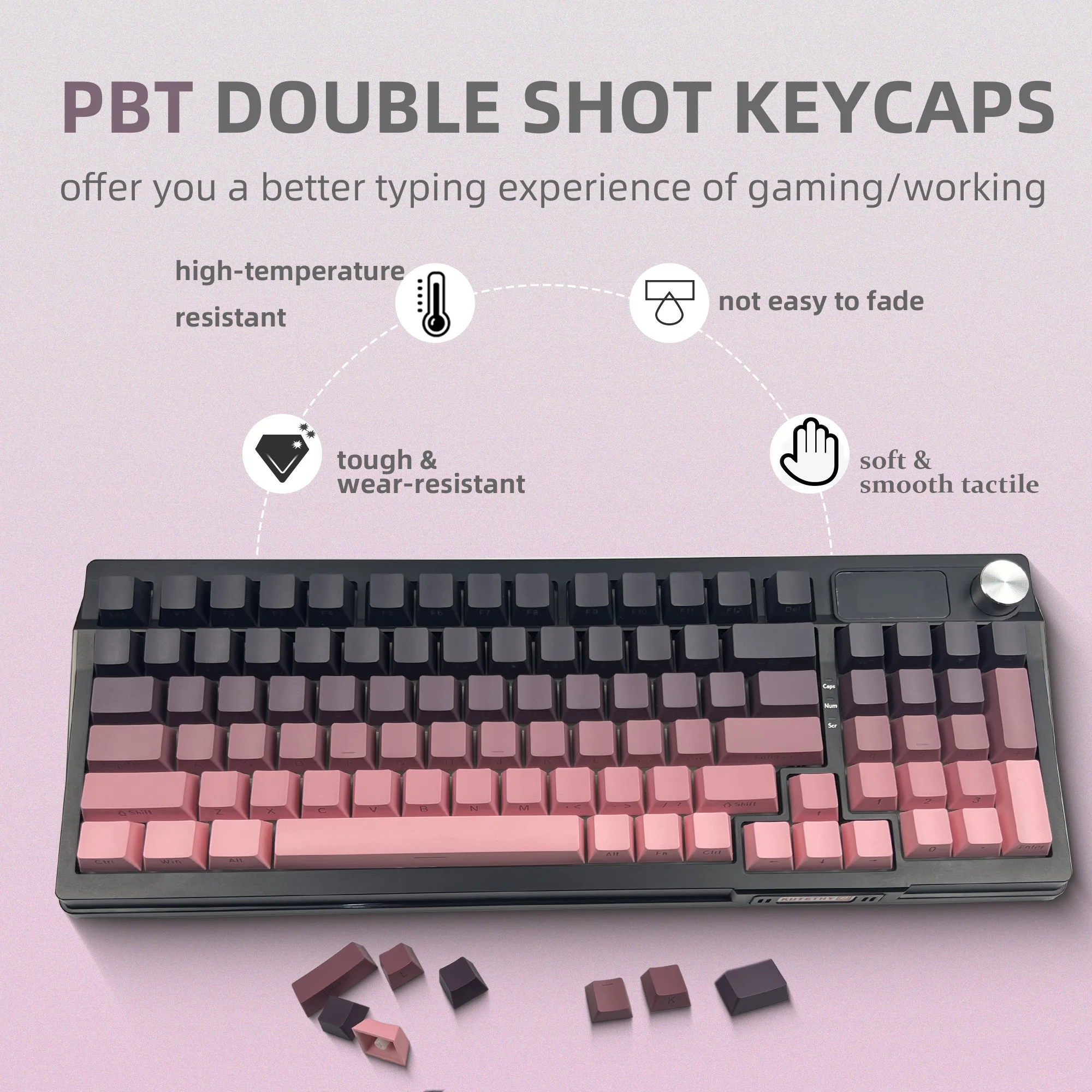 Blackberry Gradient Side-Engraved Keycaps PBT Material, Resistant to Grease Buildup 135-Key Full Mechanical Keyboard Compatible