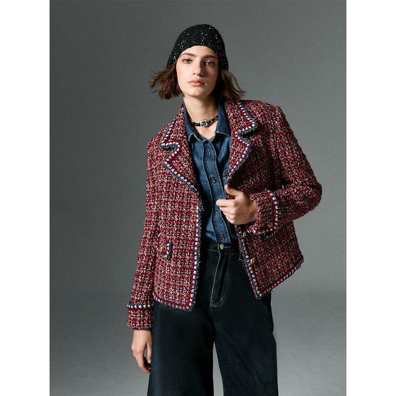 Blacknini Инь Вафельный/Ткань Рот Цзинь Тяжелая Промышленность Стиль Nautica Твидовый Пиджак Воротник Пальто Red M (Waffle size)