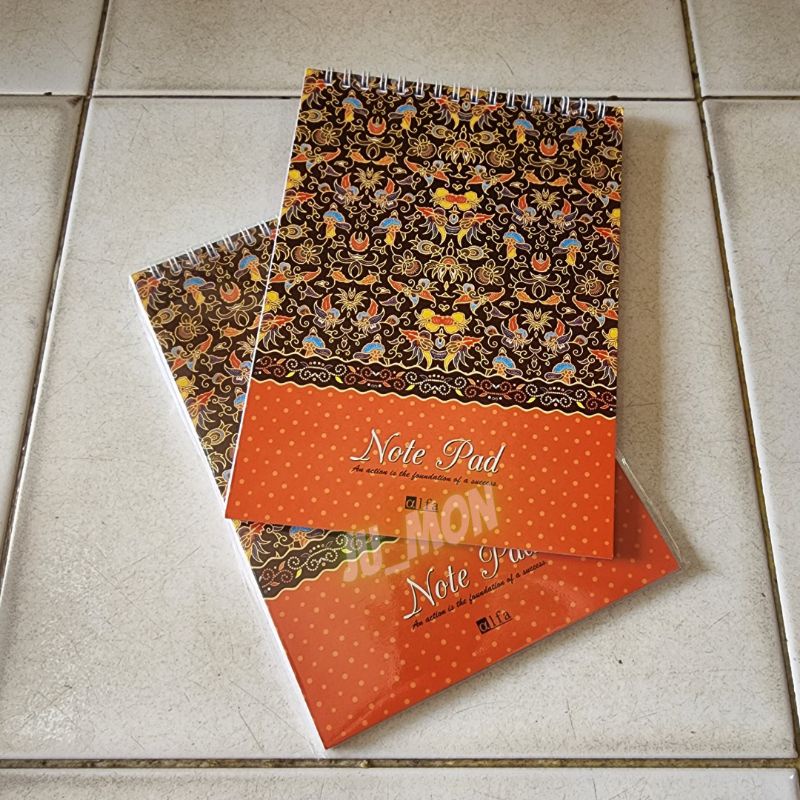 Blocknote/ note pad spiral A5 Alfa dengan design batik yang elegan sangat cocok untuk acara seminar ataupun untuk keperluan mencatat di sekolah maupun di kantor.