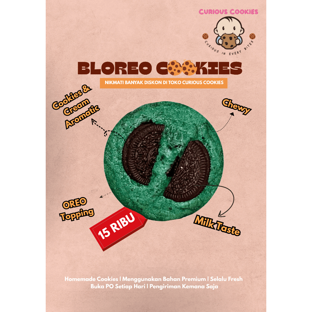 Cookies dengan crumble Oreo dan topping oreo di atasnya